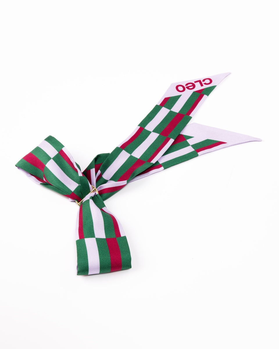 Wrap it around your ponytail, weave it through your bag handles, or thread it through your belt loops and clip on a Cleo Mirror Case using our Accessory Holder - the ultimate mix of function and style. Or tie it as a slender stole with our Scarf Rings. Designed with bold prints and contemporary style, this skinny silk scarf is the subtle touch that elevates every look.