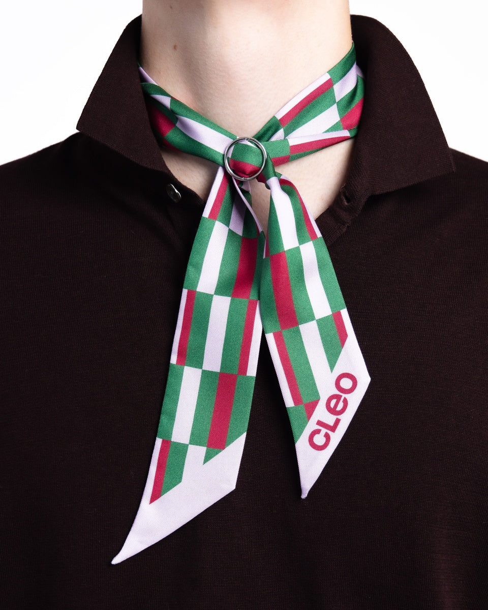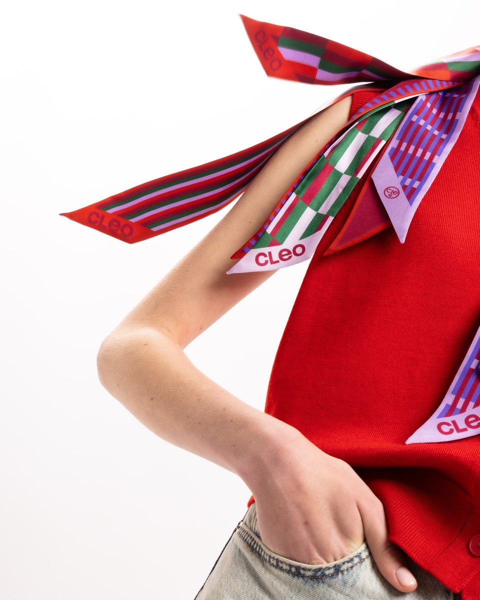 Foulard (45 x 45 cm): For when Cleo is feeling playful. This versatile silk square ties neatly at the neck or slips into a pocket. Small, but never underestimated, it adds warmth, joy, and polish to any outfit.